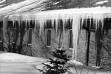 Photograph 2 illustrates unusually high heat loss from the roof. There is very little snow left on the roof and at its edge is both an ice dam and a "beautiful" row of icicles.